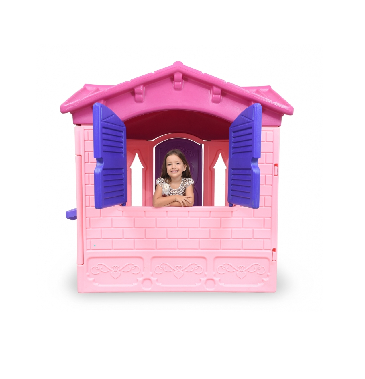 Nesta brincadeira de faz de conta a criançada vai se divertir. Com pia, fogão, cadeirinha, floreira e campainha, esta linda casinha é ótima para estimular o convívio e a imaginação da criançada, através das divertidas brincadeiras em grupo. Feita totalmente em plástico rotomoldado, altamente resistente. A textura de suas paredes simula tijolos e todos os lados possuem aberturas. Com este produto as crianças terão muita diversão e segurança.