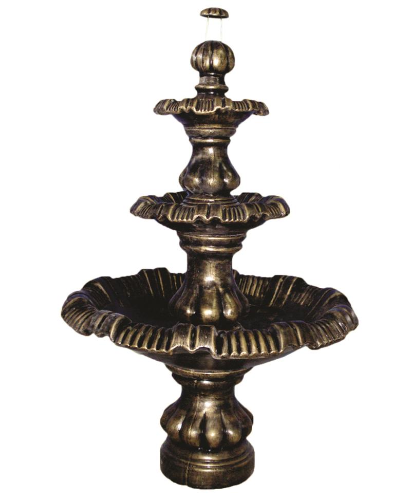 Fonte em cimento, resistente, com pintura ou sem pintura, composto de 3 pés + 3 pratos (50cm/70cm/130cm) + pinha + chapeuzinho da pinha + 1 bomba de 2000c. É necessário uma fonte de alimentação (tomada 110v ou 220v) para ligar a bomba.